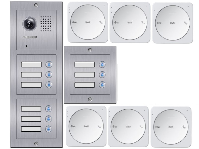 9-Familienhaus Edelstahl Türsprechanlage 2-Draht Technik, ultraflaches Design Sprechstelle XD4A, Edelstahl Aussenstation XD91A, Aussen Unterputzmontage, Innen im Wohnraum Aufputzmontage