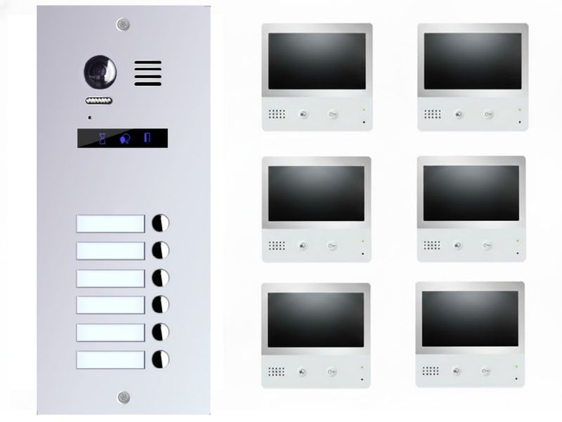 Edelstahl Aussenklingel ES6-fe + 6x Monitore DX471 mit 7Zoll Display
