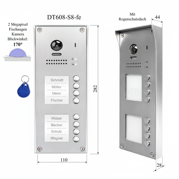8-Familienhaus Achtfamilienhaus Video Türklingel- und Sprechanlage mit Kamera DT608 + 8x DT47s